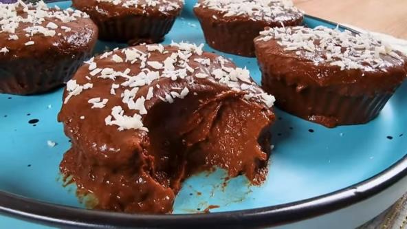 Banane usitnite u blenderu ili secku da dobijete gustu smesu. Čokoladu otopite u mikrotalasnoj pa je dodajte banama. Dobro promešajte. Smesu sipajte u kalup za mafine i ostavite u frižideru pola sata. Ukrasite kokosom po vrhu.