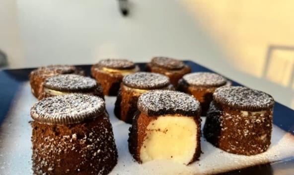 U šerpu sipajte mleko, šećer, vanilin šećer, brašno, skrob i promešajte. Kuvajte dok se ne zgusne, uz neprestano mešanje. Sklonite sa šporeta, pa dodajte puter i mešajte dok se ne otopi. Uzmite 3 čaše, malo ih navlažite vodom i sipajte jednako smesu u sve tri. Zatvorite providnom folijom. Ohaldite prvo na sobnoj temperaturi, pa stavite u frižider dok se skroz ne ohladi. Oreo keksu skinite beli krem, pa izblendirajte crni keks. Isecite na polovine i uvaljajte u izdrobljeni oreo keks. Uzmite polovine oreo keksa i stavite preko kolača. Umesto keksa možete da prelijte vrh kolača istopljenom čokoladom.