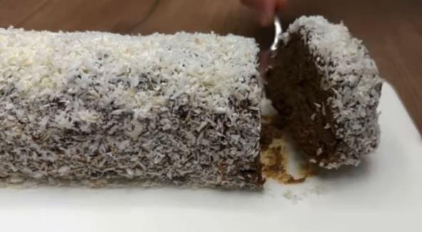 Umutite puding od čokolade sa mlekom, pa dodajte u njega maragrin sobne temperature koji ste prethodno umutili. Zatim sjedinite mikserom, pa u smesu dodajte i izmrvljeni keks. Lepo promešajte, a onda je prebacite na pek papir i napravite oblik valjka. Dobro umotajte i ostavite u frižideru par sati. Nakon toga kolač uvaljajte u kokos i secite.