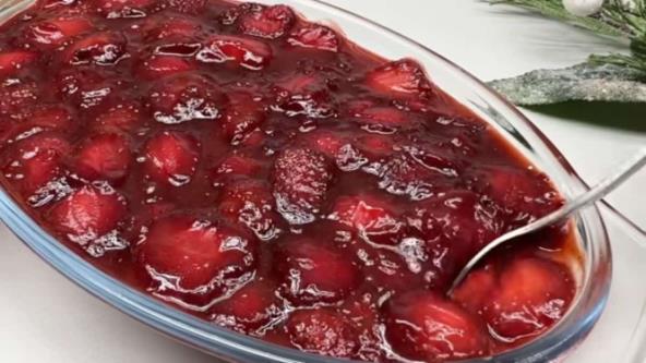 Jagode (250 g) izblendirajte sa šećerom (80 g), pa u tu smesu sipajte mleko. Procedite, pa proceđenu smesu sipajte u šerpu i dodajte skrob. Kuvajte dok se ne zgusne, uz neprestano mešanje. Zatim sipajte u vatrostalnu posudu, poravnajte, pokrijte providnom folijom i ostavite da se ohladi u frižideru pola sata. Za to vreme otopite puter sa šećerom (60 g) i kada se karamelizuje dodajte seckane jagode (200 g). Kuvajte još par minuta, pa dobijenu smesu sipajte preko ohlađenog kolača. Poravnajte i ostavite ponovo u frižideru sat vremena da se stegne. Prijatno!