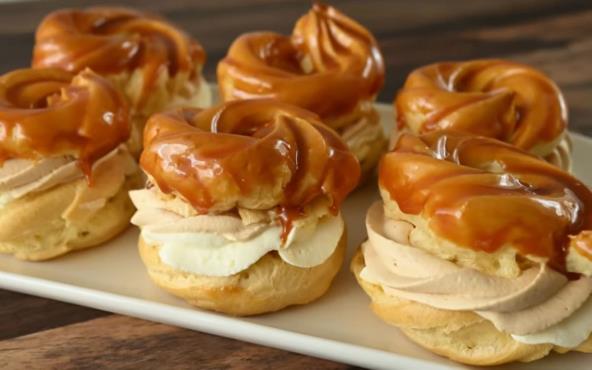 Princes krofne spadaju među čuvene francuske poslastice koje se prave od kuvanog testa i mirisnog fila od vanile. Veoma su slične profiterolama, s tim što su ove druge minijaturne i prelivaju se čokoladom. Koliko god delovalo komplikovano, priprema nije previše teška, ali bitno je da proceduru za testo ispratite korak po korak. Takođe je važno da kuvano testo sve vreme pazite, jer lako može da zagori. Danas vam donosimo recept za neodoljive princes krofnekoje se prave sa 2 različita fila, a vrh se umače u neodoljivu karamel glazuru.