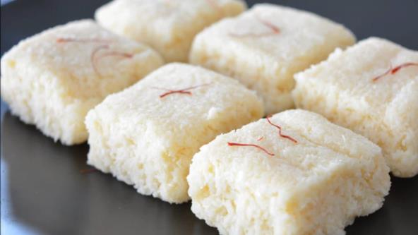 Pomšajte kokos i kondenzovano mleko, pa kuvajte na tihoj vatri dok se sastojci lepo ne sjedine. Dobijenu smesu utisnite u vatrostalnu posudu koju ste obložili pek papirom. Ostavite u frižideru nekih 20-25 minuta. Isecite kocke i služite.