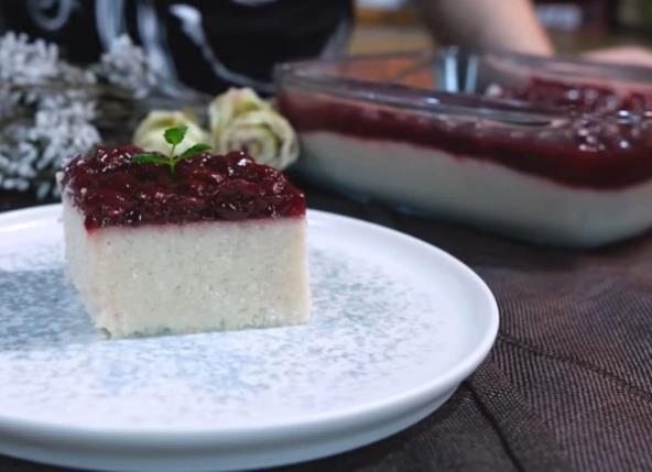 U šerpu sipajte mleko, pa dodajte šećer, skrob, vanilin šećer i promešajte. Kuvajte dok se ne zgusne, uz neprestano mešanje. Na kraju dodajte kokos, a onda lepo sjedinite i sipajte smesu u četvrtastu vatrostalnu posudu. Pokrijte providnom folijom, pa ohladite na sobnoj temeperaturi, a onda prebacite u frižider. U šerpu sipajte sok od višnje (iz konzerve) i dodajte šećer, pa kuvajte. U posudi pomešajte skrob i vodu i dobro sjedinite, pa sipajte u sok od višanja. Kuvajte dok ne krene da ključa, pa dodajte višnje. Nastavite da kuvate dok se smesa malo ne zgusne. Sipajte fil od voća preko ohlađenog kolača, pa ohladite na sobnoj temepraturi nekih 2 sata, a onda stavite u frižider na 2 sata.