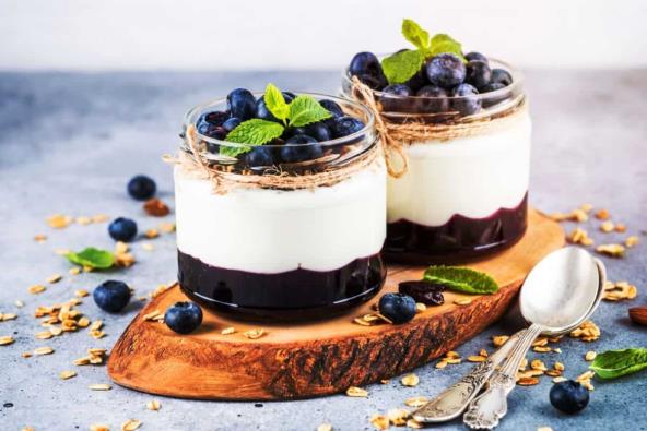 U blender stavite očišćeni avokado, mleko od kokosa i sok od limuna. Dobro izblendirajte, a ako želite možete da dodate malo cimeta ili ekstrakta vanile. Takođe možete da dodate i pola banane, ali onda će kolač imati više kalorija. Borovnice ili šumsko voće takođe izblendirajte. U neku čašu ili teglu sipajte prvo smesu sa avokadom, pa sa borovnicama i tako ređajte slojeve dok ne utrošite sastojke. Možete samo i dva sloja, prvo borovnice, pa avokado, kako vam je lakše. Dekorišite kolač orasima i nanom.
