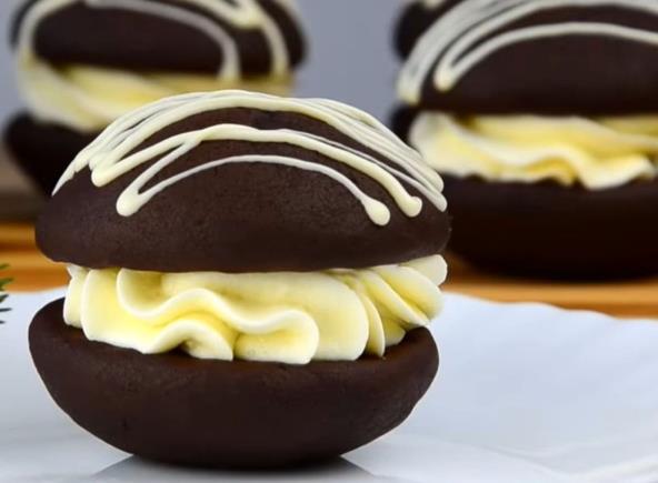 Penasto umutite jaje sa šećerom, pa sipajte jogurt, istopljeni puter i nastavite da mutite. Zatim dodajte prosejano brašno sa kakaom, praškom za pecivo i sodom bikarbonom. Sve dobro umutite, pa pokrijte providnom folijom i ostavite da se smesa ohladi. Za to vreme penasto umutite puter sobne temeprature sa šećerom u prahu, pa dodajte umućenu slatku pavlaku i sve lepo sjedinite mikserom. Sipajte fil za vanilice u špric za kolače. Ruke nauljite, pa uzmite malo testa za vanilice i oblikujte lopticu, pa je malo spljoštite (testo je lepljivo i zato obavezno premažite ruke uljem). Ređajte na pleh obložen pek papirom. Pecite u zagrejanoj rerni na 170°C oko 10-15 minuta, na gornjoj rešetki. Ispecite i drugu turu na isti način. Na jednu poluloptu od testa sipajte krem i preklopite drugom poluloptom. Ukrasite vanilice istopljenom belom čokoladom i služite.
