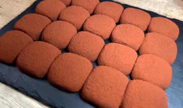 Izvadite iz zamrzivača, skinite providnu foliju, pa pospite kakaom. Zatim isecite kocke, uzmite jednu i rukama oblikujte pravu kocku, pa ponovo uvaljajte u kakao.