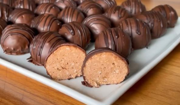 Ispasirajte jagode i banane, pa pomešajte. Dodajte mlevenu plazmu i dobro sjedinite sve sastojke. Zatim sipajte med i sjedinite, a onda oblikujte loptice i ređajte na tanjir. Čokoladu istopite sa uljem, pa umočite sitne kolače. Ponovo ređajte na tacnu i stavite u frižider da se stegnu.