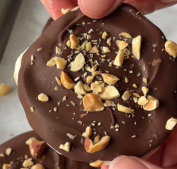 Neposredno pre nego što izvadite iz zamrzivača, istopite čokoladu na pari. Preko smrznutog jogurta permažite otopljenu čokoladu i odmah pospite seckanim kikirikijem. Vratite u zamrzivač na 5 minuta, a zatim uživajte! Ukoliko volite keksiće, možda ćete želeti da napravite i domaći biskvit sa limunom po italijanskom receptu.