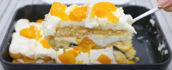 Za ovaj tiramisu prvo potopite breskve isečene na kockice u sok od breskve na 30 minuta. Kada završite sa natapanjem, procedite breskve i sačuvajte ostatak soka. Umutite krem sir i šećer u prahu, dok smesa ne postane glatka. U posebnoj posudi umutite čvrst šlag.