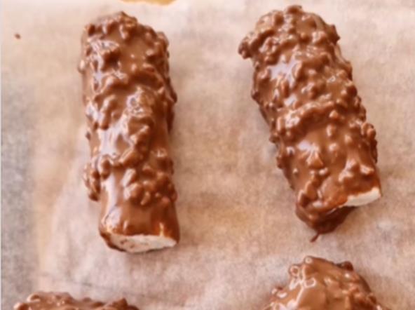 U međuvremenu istopite čokoladu na pari, sipajte lešnike, a zatim umačite pralinu po pralinu. Ostavite ih da se hlade još pola sata dok se ne stvrdnu, a zatim serivrajte. Možda žete želeti da napravite i praline od banane i jogurta prelivene čokoladom.