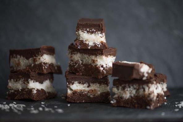 Otopite komadiće čokolade i kokosovo ulje na pari. Prelijte čokoladu preko sloja kokosa i ravnomerno rasporedite po posudi. Ohladite kolače od kokosa u frižideru 1 sat ili duže. Nakon toga isecite i uživajte. Možda ćete želeti da napravite i čokoladni parfe sa keksom koji se pravi za 5 minuta.