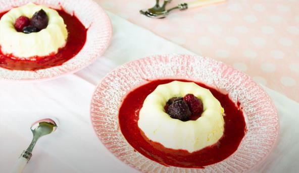 Stavite ovu činiju na lonac sa vrelom vodom i zagrejte je na pari. Stalno mešajte dok smesa ne počne da se zgušnjava. Ne dozvolite da voda ili smeša proključa! Kada se smesa zgusne dodajte želatin i sve dobro izmešajte. Ostavite smesu da se ohladi i povremeno mešajte. Kada počne da se pretvara u žele, nastavite sa sledećim korakom. Umutite šlag do pola i dodajte u vanilin masu. Promešajte i sipajte krem u četiri činije. Stavite u frižider na oko 3 sata ili preko noći. Servirajte sa svežim bobicama i sosom od bobica. Pročitajte kako da napravite i čokoladni krem sa aromom kafe.