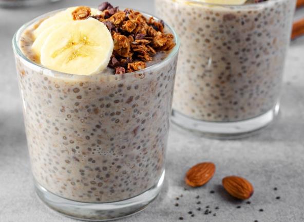 Kako biste napravili čia puding, u tegli sa poklopcem pomešajte bademovo mleko, čia semenke, med i cimet. Pokrijte i protresite da se sjedini. Ohladite nekoliko sati, a zatim dobro promešajte kako ne bi bilo grudvica.