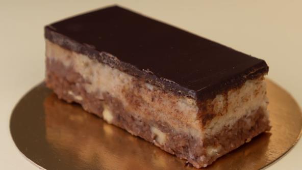 Poslednje stavite manje čokoladno testo. Ovo može biti najteži deo jer je ovaj sloj najtanji. Prvo pospite testo pa ga izravnajte papirom za pečenje. Stavite kolač u frižider na nekoliko sati. Otopite čokoladu i ulje na pari. Prelijte glazuru preko kolača i protresite pleh da se ravnomerno rasporedi. Vratite ga u frižider preko noći. Bajadere isecite na komade veličine 2x4 cm. Uživajte. Možda ćete želeti da napravite i drugačiju bajaderu koja se pravi od kafe i orašastih plodova.