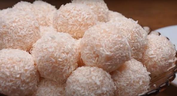 Čim se smesa zgusne i počne da bubri, sklonite je sa ringle. Pustite da se krem potpuno ohladi na sobnoj temperaturi. Povremeno mešajte da se ne bi osušio i da bi se brže ohladio. Kada se krem ohladio, počnite da pravite kuglice tako što ćete ruke da navlažite vodom. Uzmite malo smese u ruke i uvaljajte dlanovima u kuglicu veličine oraha. Pripremljene kuglice uvaljajte u kokosove pahuljice. Možda ćete želeti da napravite i ferero roše kuglice.