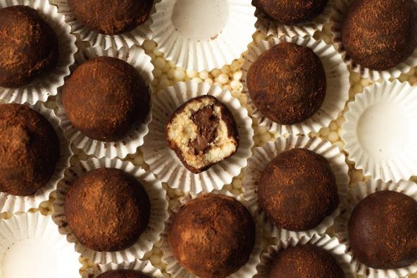 Po želji neke od kuglica samo uvaljajte u kakao prah. Ostavite kuglice u frižideru dok ne postanu čvrste, najmanje 30 minuta ili preko noći. Možda ćete želeti da napravite i kuglice od suvog voća i kikirikija prelivene čokoladom.