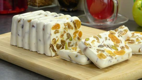 Dodajte pripremljene orašaste plodove i seckano suvo voće u kremastu smesu. Lagano promešajte kašikom dok se sve ravnomerno ne sjedini. Pripremite kalup za tortu i premažite ga tankim slojem maslinovog ulja (ili koristite papir za pečenje). Sipajte smesu u kalup i ravnomerno rasporedite. Pokrijte prozirnom folijom. Stavite u frižider na najmanje 4 sata (ili preko noći) da se kolač stegne.