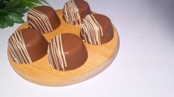 Vratite kalup u frižider na još 30 minuta, dok se praline potpuno ne stegnu. Pažljivo ih izvadite iz kalupa i, po želji, ukrasite tankim mlazom otopljene bele čokolade.