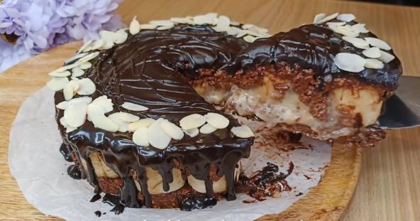Jednostavan, zdrav i neodoljivo ukusan. Ovaj desert bez brašna, bez šećera i bez pečenja osvojiće vas na prvi zalogaj. Spoj zrelih banana, ovsa, kakaa i orašastih plodova u podlozi, osvežavajući fil od banana i čia semenki i fina čokoladna glazura čine ovu poslasticu savršenom za sve prilike – čak i kad nemate mnogo vremena.