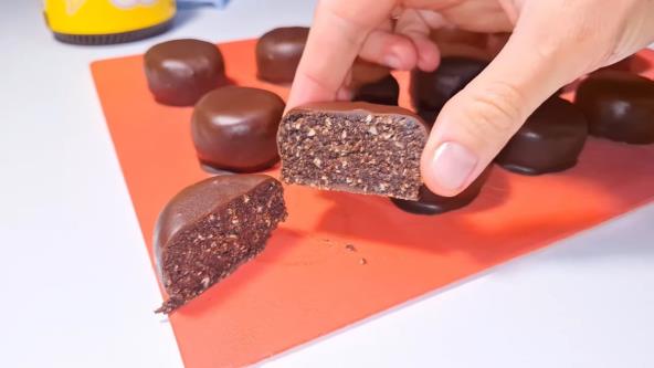 Otopite čokoladu sa kašikom ulja na pari ili u mikrotalasnoj. Svaku kuglicu umočite u čokoladu i vratite na papir. Ostavite u frižideru najmanje 1 sat da se glazura stegne.