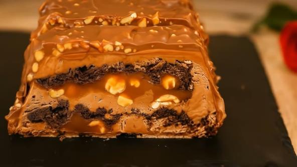 Bogata, slana, slatka i kremasta – ova ledena poslastica spoj je svega što volimo u Snikersu, ali u obliku osvežavajuće torte iz zamrzivača. Idealna za vrele dane!