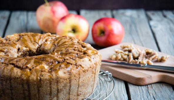 3. Ubaciti brašno i griz i varjačom mešati dok se ne razbiju grudvice. Dodati rendane jabuke i cimet i sve lepo promešati.