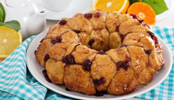 5. Peći u rerni na 180 stepeni 25 minuta. Ostaviti da se prohladi i prevrnuti kuglof na tacnu. Posuti šećerom u prahu. Jede se rukama, otkidajući kuglicu po kuglicu. Kao preliv može se ušpinovati 100g šećera i 400g malina, da se dobije gusta masa. Prelivati preko otkinute kuglice.