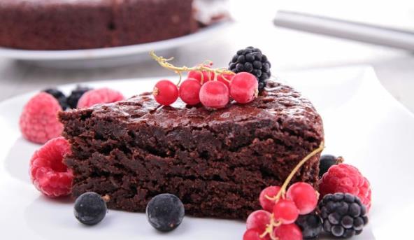 7. Prilikom serviranja, kolač možete ukrasiti malinama i sirupom od jagode.