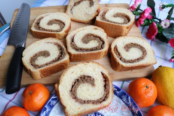 Orahe mlevene pošećeriti, dodati 2-5 kašika vrućeg mleka i izjednačiti. Time premazati štrudlu, ostavite donji deo, ne mazati već iseći na trake.