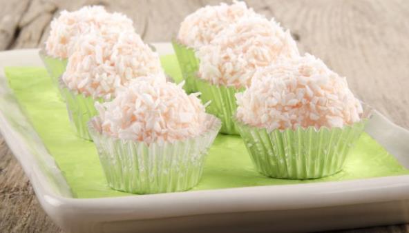 Oljuštite jabuke, isecite na kockice i skuvajte ih sa šećerom, bez vode. Dodajte mleveni keks i cimet. Napravite bombice i uvaljajte ih u kokosovo brašno.