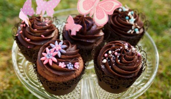 2. U blenderu usitnite čokoladu. U velikoj posudi pomešajte brašno, šećer, kakao, ulje, 100 ml pavlake, jaja, vanilu i 100 ml vode. Sve dobro promešajte dok ne dobijete glatku masu. Masi zatim postepeno dodajte 100 g čokolade i promešajte. Smesu rasporedite u kalupe i pecite u zagrejanoj rerni oko 20 minuta. Ostavite da se ohladi.