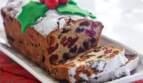 2. U velikoj posudi umutite omekšali puter, šećer, brašno, prašak za pecivo, jaja i ekstrakt vanile. Mutite oko 5 minuta, da postane kremasto i dobije svetlu boju. Smesa bi trebalo da bude vrlo čvrsta. U pripremljen pleh sipajte trećinu smese, a preko pospite 50 g voća. Preko voća lagano sipajte drugu trećinu testa i opet rasporedite 50 g voća. Preko sipajte ostatak testa i lagano rasporedite po celom plehu pomoću drške kašike. Pecite oko sat vremena.