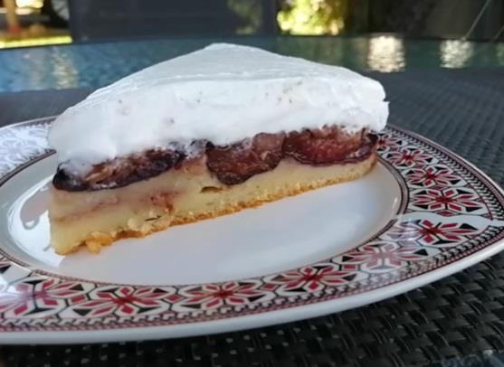 Pecite na 200°C oko 35 minuta. Izvadite kolač na tacnu, ali tako da šljive sada budu na vrhu. Premažite šlagom koji ste umutili prema uputstvu.