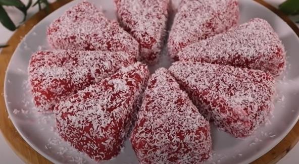 Stavite šerpu na ringlu, sipajte 5 čaša soka i lagano zagrevajte. Zatim dodajte kukuruzni skrob i mešajte dok se ne istopi. Dodajte i šećer pa zagrevajte dok ne dobijete gustu masu kao za puding. Zatim stavite smesu u kaupe oblika po želji, koje ste prethodno nakvasili vodom. Ostavite da se malo ohladi i stegne. Kada izvadite kolač iz kalupa uvaljajte u kokos i služite.