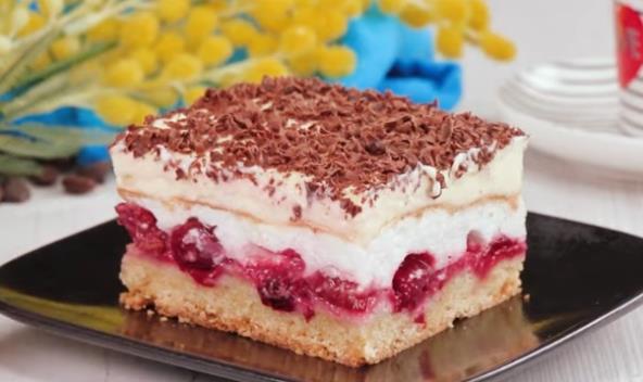 Višnje ovom kolaču daju svežinu, dok beze krcka u ustima, a kremasti fil se topi. Umesto višanja možete da ubacite maline ili kupine, kako bi dale taj kiselkasti ukus. Kada jednom probate, nećete moći da se zaustavite koliko je dobro.