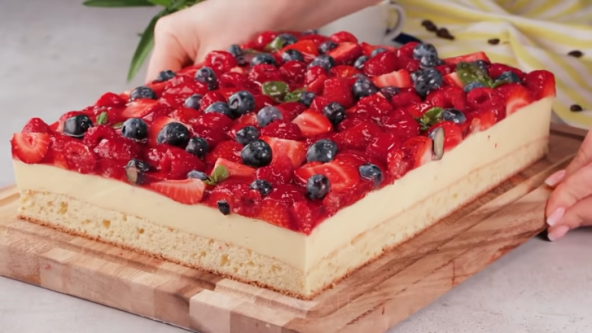 Mekani biskvit koji podseća na patišpanj, preko puding od vanile i sezonsko voće čine ovaj kolač savršenim. Njegova lagana priprema je samo dodatni plus. Kada se pitate kako možete da impresionirate goste ili ukućane onda je voćni kolač koji izgleda fenomenalno, a takvog je i ukusa pravo rešenje.