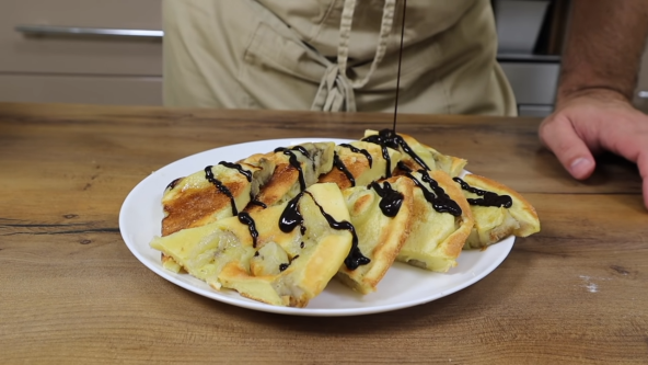 Lagani kolač koji možete da poslužite iznenadnim gostima jer uglavnom sve sastojke imate kod kuće, a za pripremu vam ne treba puno vremena. Za ovaj kolač ćete isprljati samo jednu posudu i tiganj. Nema čak ni puno pranja sudova posle pripreme. Ono što je zanimljivo kod ovog kolača je da podseća na palačinke koje su ispečene sa bananama.
