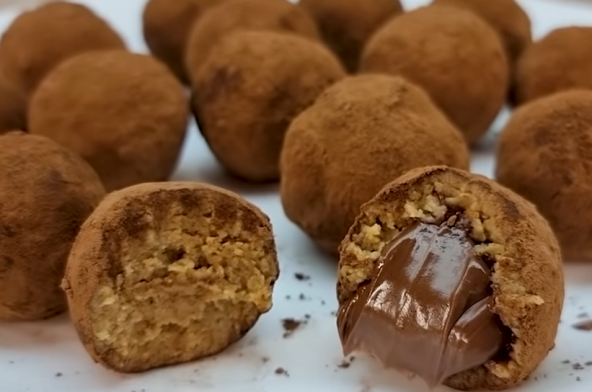 Nes kafu pomešajte sa vrućom vodom, izmešajte i ostavite da se malo ohladi. U drugoj posudi izmešajte sir i šećer u prahu, pa sipajte ohlađenu kafu, ekstrakt vanile, dodajte i mlevene kekse, sve izmešajte i od tako dobijenog testa rukama pravite male loptice. Uvaljajte ih u kakao prah, a za još slađi ukus punite ih nutelom. Stavite ih pola sata u zamrzivač da se malo stegnu.