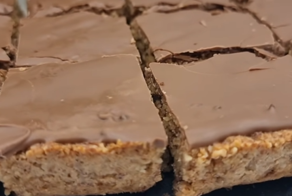 Mlevenim bademima dodajte jaje, ulje, šećer, prašak za pecivo i mleko, pa sve zajedno dobro promešajte. Dobijenu smesu izručite u pleh i stavite da se peče na 10 minuta. Kada bude gotovo prelijte istopljenom čokoladom.