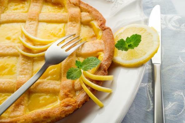 3.Zagrejati rernu na 180 stepeni. Testo razviti na radnoj površini posutoj brašnom i iseći krug plehom u kojem će se peći. Nauljiti pleh, staviti testo i podići ivice. Ostatak testa ponovo premesiti, oklagijati i iseći na trake. Sipati pripremljeni krem od limuna, poravnati ga i preko njega u obliku rešetke poređati trake od testa. Peći oko 35 minuta i izvaditi ga iz pleha. Pustiti kolač da se prohladi.