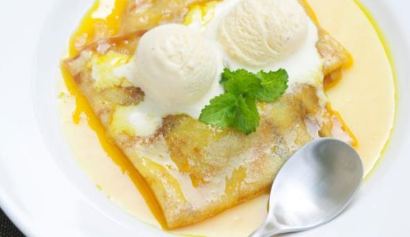 6. Palačinke servirajte sa sladoledom od vanile ili šlagom.