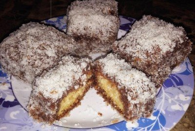 Sjediniti sve sastojke i mješati dok se malo ne zgusne. U toplo umakati prethodno ohladjene i isečene kocke. Valjati u kokos