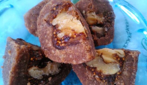 3. Od ohlađene smese praviti kuglice sa smokvom u sredini. Uvaljati ih u mlevene orahe.