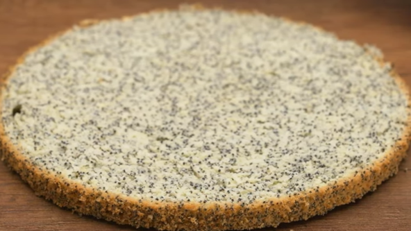 Odvojite belanca od žumanaca, pa belanca umutite sa prstohvatom soli. Postepeno dodajte šećer i mutite dok ne dobijete čvrst šne. Zatim postepeno dodajte žumanca i mutite. Prosejano brašno i mak dodajte iz više puta, pa lagano špatulom mešajte da se sjedini. Na kraju sipajte istopljeni puter i opet promešajte. Sipajte u kalup prečnika 21 cm koji ste obložili pek papirom. Zatim poravnajte i pecite na 180°C oko 35-40 minuta.