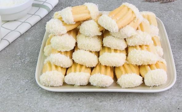 U činiju dodajte jaje, vanilin šećer i šećer i mutite dok se šećer ne rastvori. Dodati kukuruzni skrob, ulje, koricu limuna, brašno i prašak za pecivo, pa sve dobro izmešati dok se ne dobije testo. Mesite testo rukama dok ne postane glatko. Testo podelite na 5 jednakih delova i svaki deo razvaljajte u oblik štapića. Prerežite štap na pola i izbodite viljuškom da biste napravili oblik ( pogledajte fotografiju u nastavkua). Izrežite svaki deo gde je oblik. Prebacite kolačiće u pleh prekriven papirom za pečenje i pecite u rerni zagrejanoj na 180°C 15 minuta. Nakon isteka vremena umočite gornju i donju stranu prvo u belu čokoladu (otopljenu), a zatim pospite kokosom i poslužite.