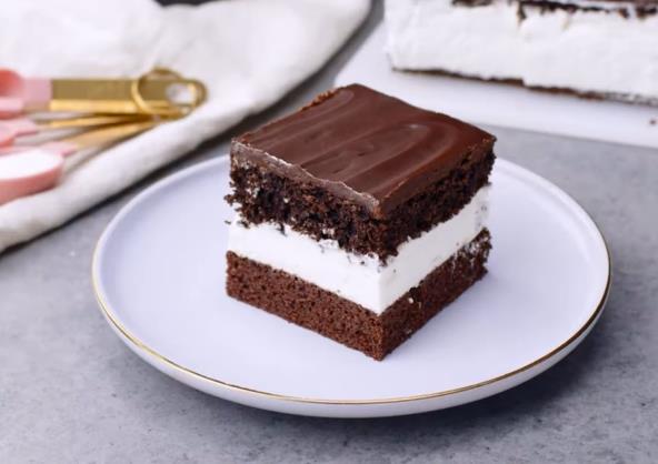 Kolač u nastavku se sastoji od dve meke čokoladne kore, kremastog belog fila i čokoladne glazure. Ukusom dosta podseća na mančmelou. Deca će naročito obožavati ovako pripremljenu poslasticu, a možete je služiti i u posebnim prilikama.
