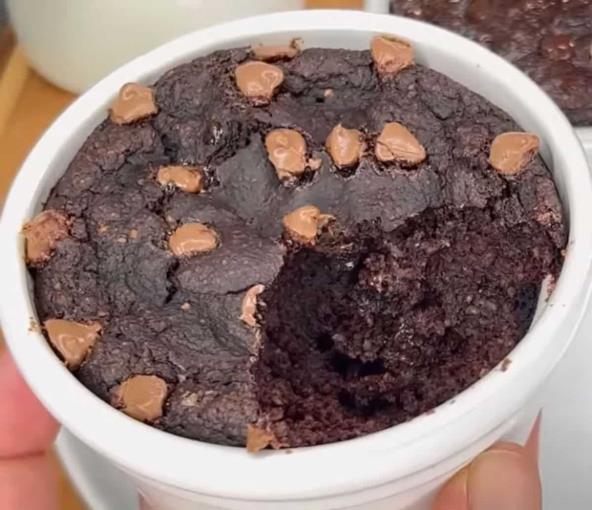 Ovsene pahuljice izblendirajte, pa stavite u posudu. Zatim dodajte pire od jabuke ili banane, mleko, prašak za pecivo i kakao. Promšejate i sipajte u blaog nauljenu posudu u kojoj ćete peći. Pospite rendanom ili mrvicama čokolade, pa pecite na 180°C oko 20-25 minuta.