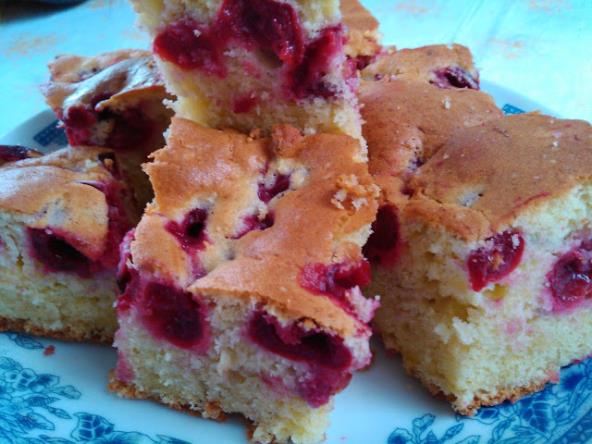 Umutiti belanca sa šećerom pa dodati žumanca, jogurt, ulje, limun, brašno pomešano sa pecivom i koricu limuna. Sve lagano izmešati i sipati u podmazan pleh koji ste i malo pobrašnjivili. Ostavite 1/3 testa. Zatim poređajte višnje pa rasporedite ostatak testa. Pecite na 180 stepeni C 40 min. Možete ohlađen kolać posuti prah šećerom sa vanilom. Sladite se i prijatno! kodbakeugostima.blogspot.com