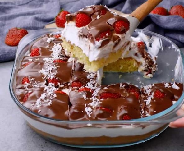 Postoji toliko recepata za ukusne kolače, neki od njih se prave jednostavno, a za neke vam ipak treba malo kulinarskog znanja i vešte ruke. Ako volite da jedete kolače, pogotovo one koji se lako prave, mi vam predlažemo da isprobate ovaj recept. Napravite mekani biskvit, a onda preko sipajte krem i jagode. Sve to prelijte čokoladom i ukrasite kokosom. Ovako ukusan kolač niste skoro probali, a uspeće i početnicima u kuhinji.