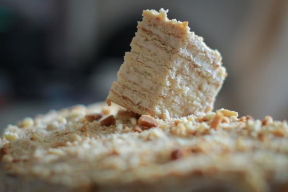 Premažite koru filom, pa pospite orasima, a zatim stavite drugu koru. I nju premažite filom za kolače, a onda pospite orasima i stavite treću koru. Ceo kolač premažite filom, pa po vrhu dekorišite orasima.